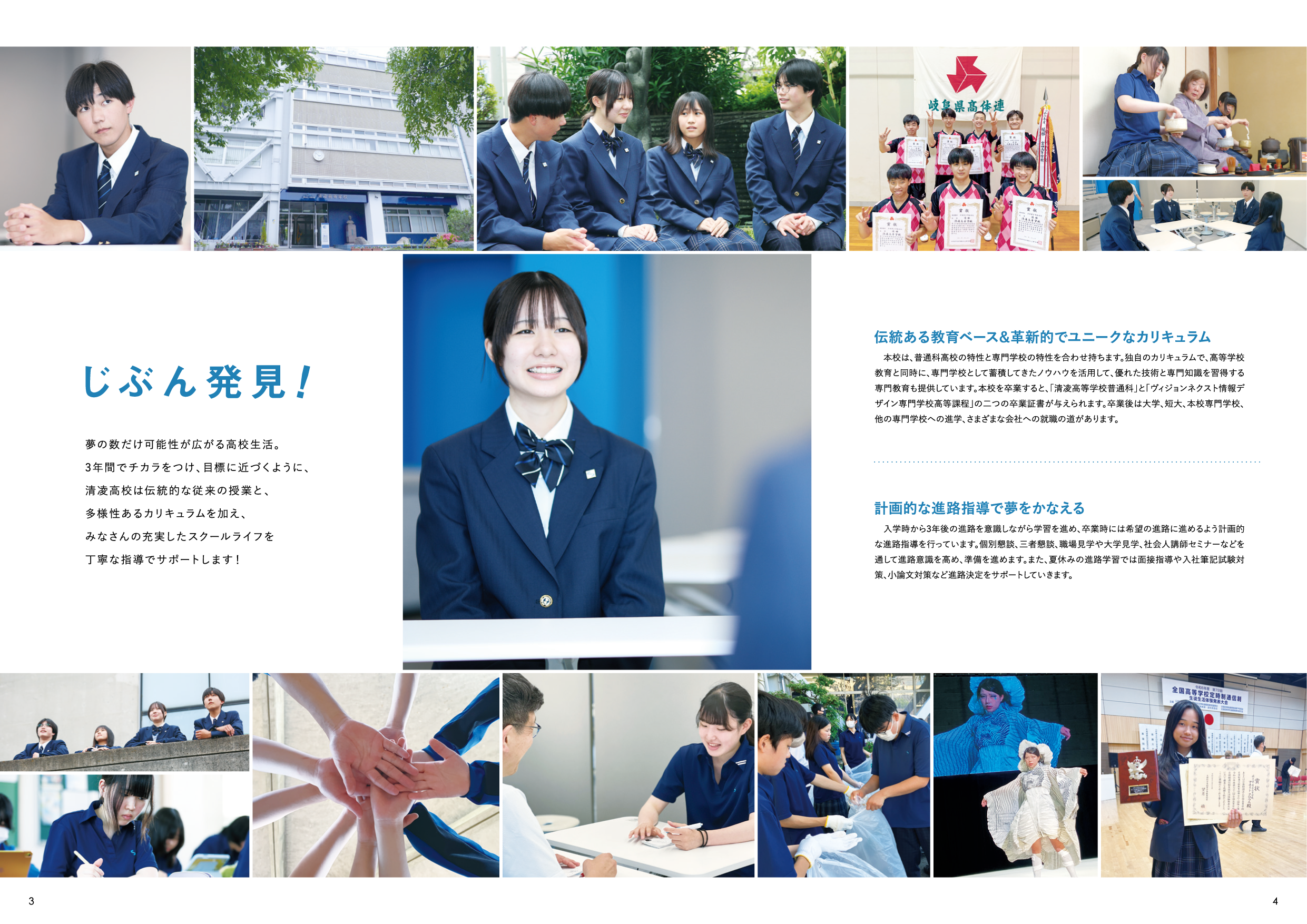 従来の賑やかな印象から、情報を精査し、シンプルですっきりとした印象に刷新。余白をゆったりと設け、写真を多用することで、堅くなりすぎず、中学生にも読み込みやすい一冊に仕上げました。