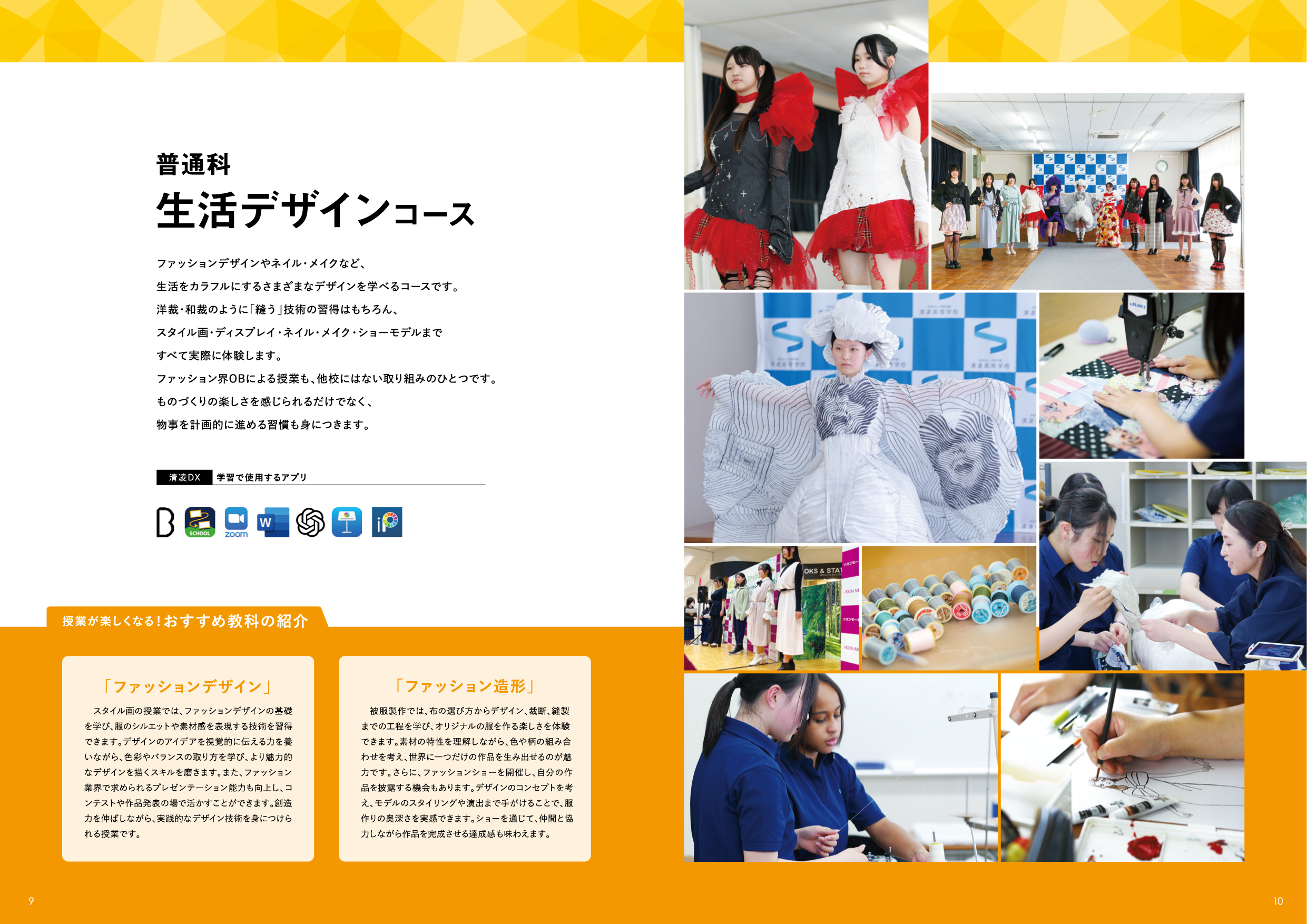 表紙は高校のロゴマークを活かした図形をダイナミックに配置し、目を引くグラフィカルなデザインに。