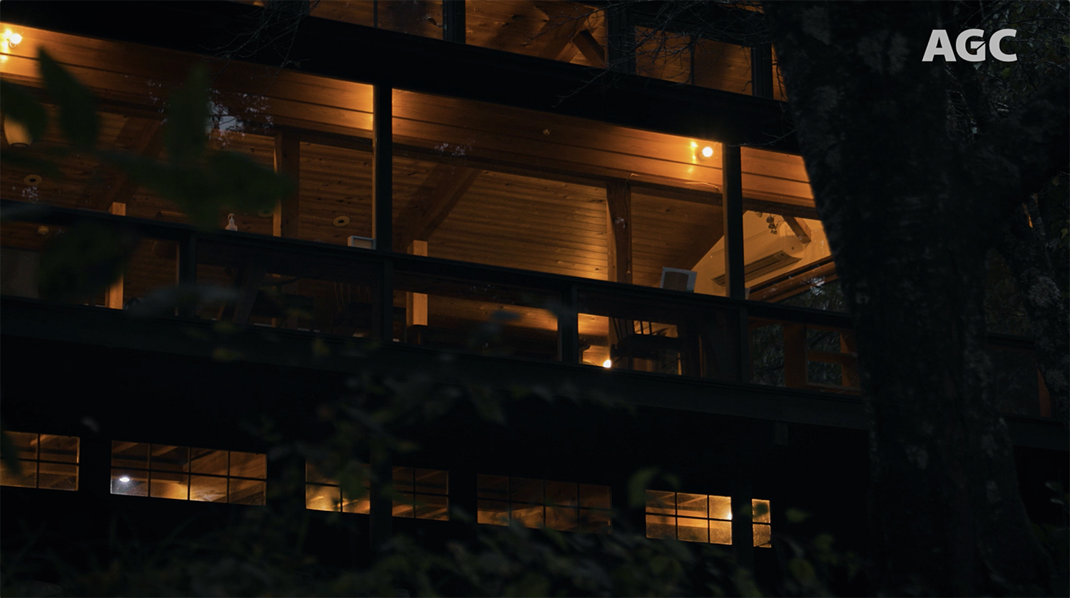 今回の映像では、「ガラスが深める木造建築と自然との調和」をテーマに、やわらかく差し込む光、ガラス越しに感じる外部環境とのつながり、素材が生み出す空間の心地よさを映像で表現。言葉だけでは捉えにくい概念だからこそ、光の移ろいや質感、空気感を大切にしながら構成しました。